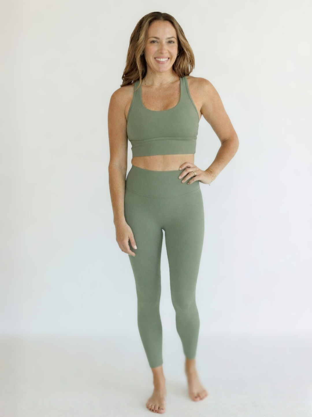 Sagewood Green "Mia" Luxe and Lift High Rise Leggings with Hidden Waistband Pocket